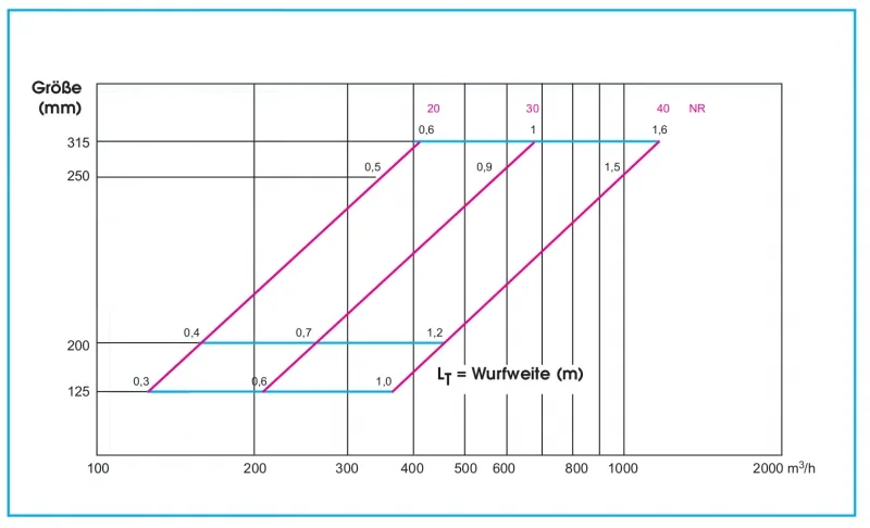 Nachfolgende Tabelle zeigt die möglichen Volumenströme [m³/Std.] bei verschiedenen Schallleistungspegeln [db(A)]: