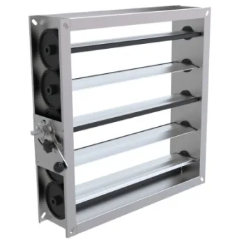 Die Jalousieklappe KAH103H 1100 x 500 mm besteht aus einem Gehäuse aus galvanisiertem Stahl und gegenläufigen Lamellen aus Aluminium. Die Klappen sind mit einer Dichtung und wartungsfreien Lagern versehen. Gehäuse Leckluftstrom nach EN12237 Klasse C, Klappen nach EN1751 Klasse 2/4 zertifiziert.