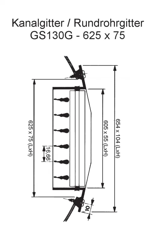 Das Kanalgitter GS130G für die Montage im Rundrohr (runder Lüftungskanal) hat folgende Eigenschaften: