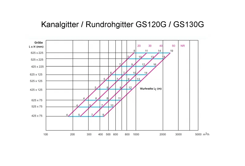 Nachfolgende Tabelle zeigt die möglichen Volumenströme [m³/Std.] bei verschiedenen Schallleistungspegeln [db(A)]:
