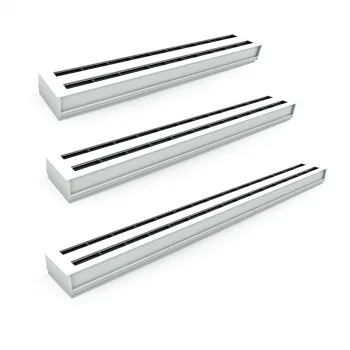 Das Lüftungsgitter / Schlitzdurchlass LT452M als Bandausführung eignet sich für die Zufuhr von gekühlter oder erwärmter Luft in Büroräumen, Hotels, Konferenzräumen, Läden, Werkstätten, Wohnräumen etc. und ist für die Deckenmontage geeignet. Der Schlitzdurchlass verfügt über 2 Schlitze mit Walzentechnik. Die integrierte Walzentechnik ermöglicht es, dass die Richtung des Luftstroms je Element frei einstellbar ist. Der Luftstrom erfolgt linear in den Raum hinein.