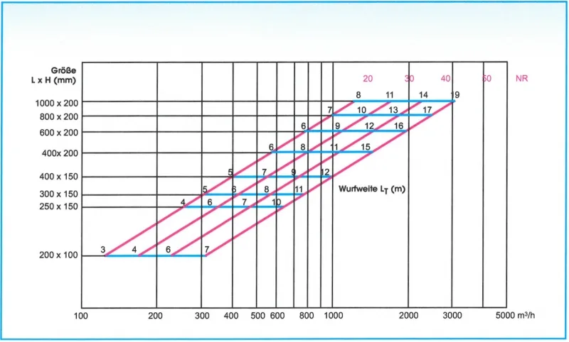 Nachfolgende Tabelle zeigt die möglichen Volumenströme [m³/Std.] bei verschiedenen Schallleistungspegeln [db(A)]:
