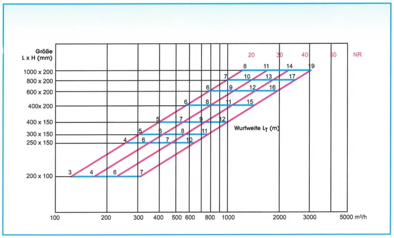 Nachfolgende Tabelle zeigt die möglichen Volumenströme [m³/Std.] bei verschiedenen Schallleistungspegeln [db(A)]: