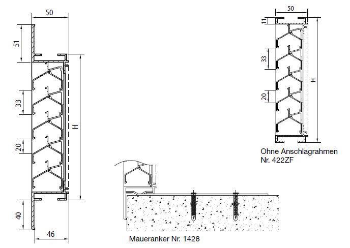 - Für Lüftungsgitter ab ungefähr 3 m⊃2; ist eine bauseitige Unterkonstruktion notwendig, passend zur Spannweite und Windlast
